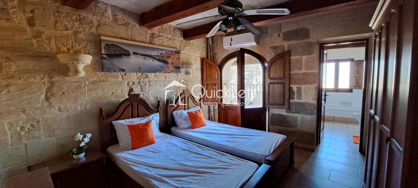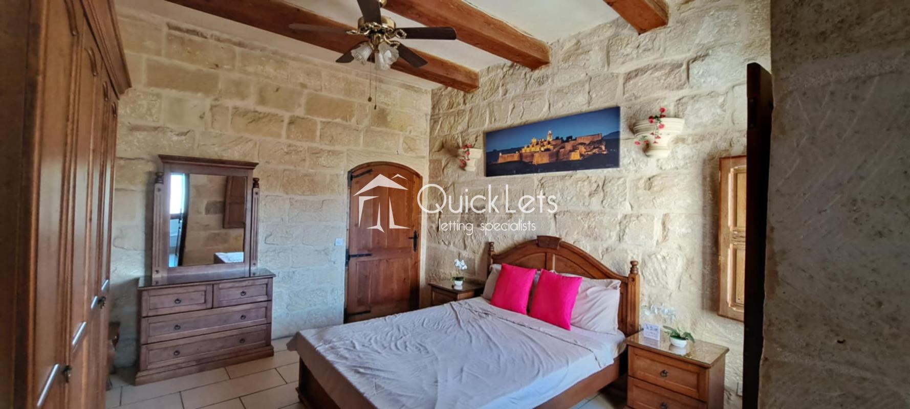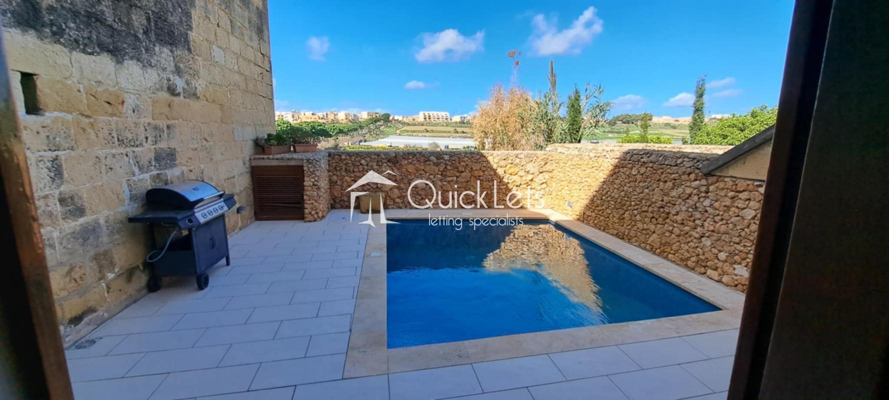 Gozo, Xewkija. This is a lovely old-style farmhouse consisting of three bedrooms & four bathrooms & swimming pool. Makes for a great family home that sleeps up to eight people. One bedroom is ground floor level & two of the bedrooms are ensuite.
