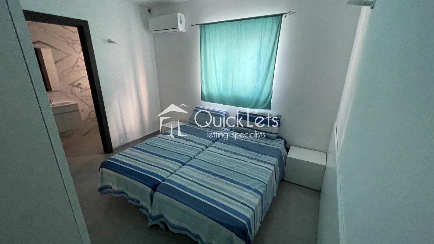 The apartment has two bedrooms, one with a double bed and one bedroom with 2 single beds, wardrobe, air conditioning. The bathroom is fitted with a walk-in shower.