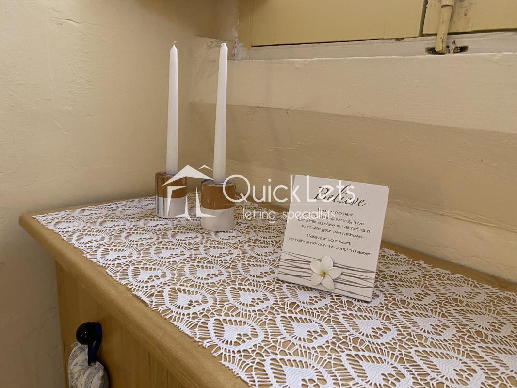 The kitchen area is wellplanned and the living area is cosy and decorated.