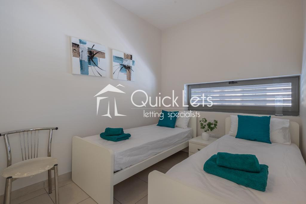 ST JULIAN'S - This elegant two-bedroom apartment in the prestigious Portomaso complex combines comfort, style, and convenience. The main bedroom is a spacious double, while the second room is currently configured as a study but can easily transform into a cozy guest bedroom or additional living space. The apartment includes a modern bathroom with sleek finishes and a separate guest toilet. Fully air-conditioned, the property ensures year-round comfort. The kitchen is equipped with a dishwasher and all essential appliances, and the apartment comes fully furnished, ready for you to move in immediately.