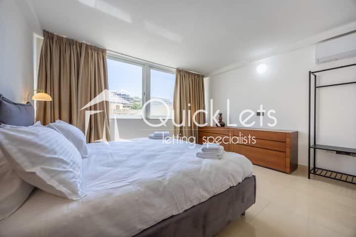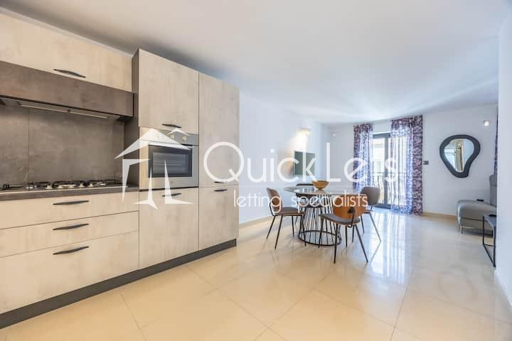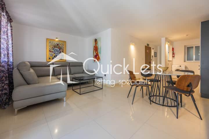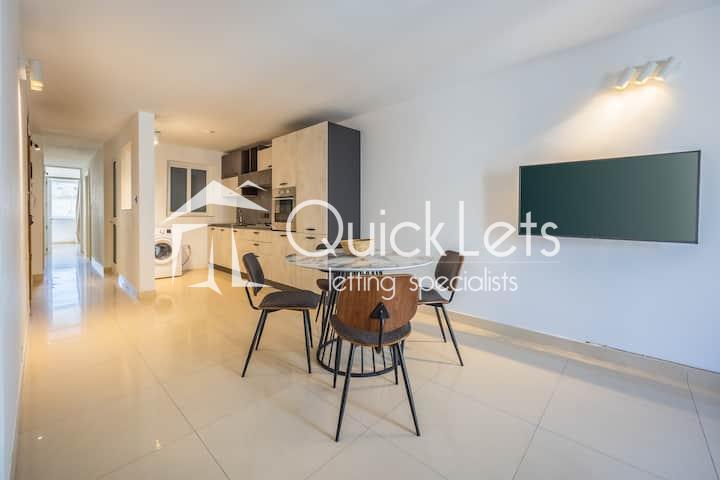Modern two-bedroom apartment available for short let in Sliema. Situated on the fourth floor and served with a lift, this bright and well-finished property offers comfortable and contemporary living. The apartment comprises two bedrooms, one bathroom, a fully equipped kitchen, and a welcoming living area leading to a front balcony. The property is offered fully furnished and includes WiFi and all utility bills, making it ideal for short stays.
