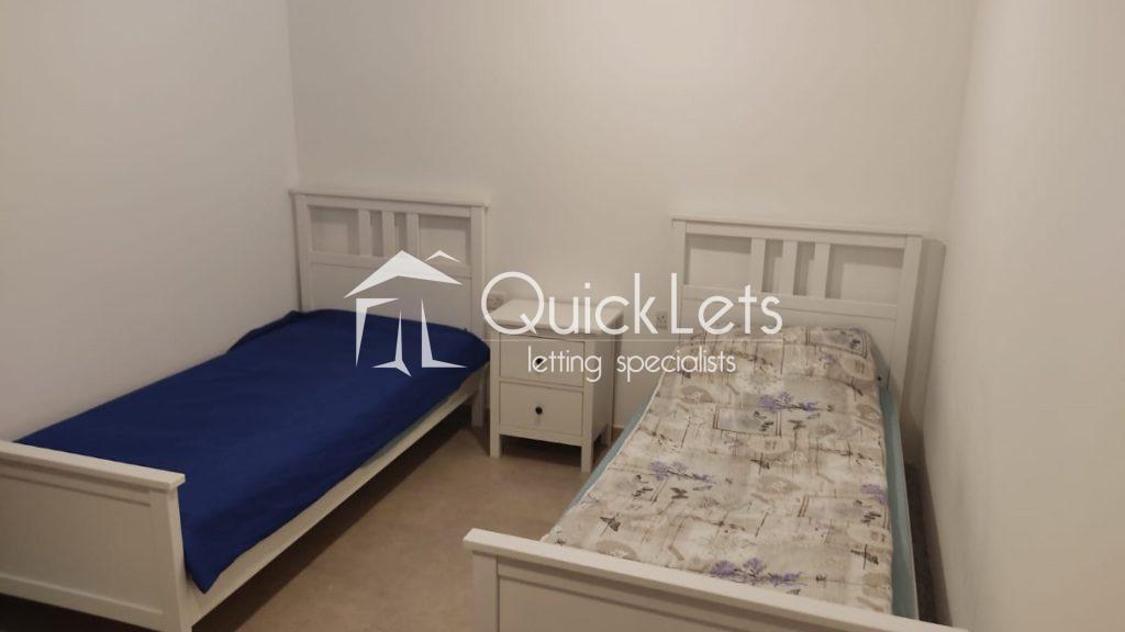 This bright and modern 2-bedroom apartment offers a perfect blend of comfort and convenience. The layout features a fully fitted kitchen and a spacious main bathroom, complemented by a front balcony for fresh air. Sleeping arrangements are versatile, consisting of a primary double bedroom and a second twin room with two single beds.
