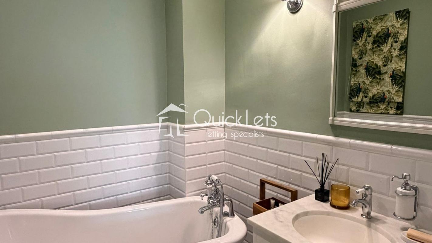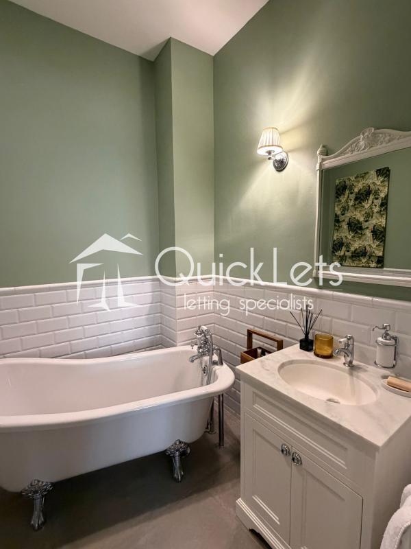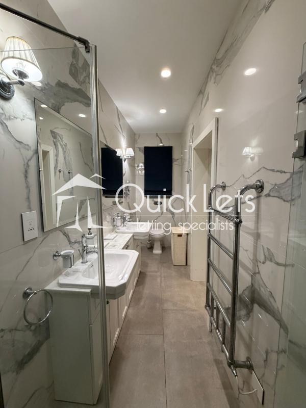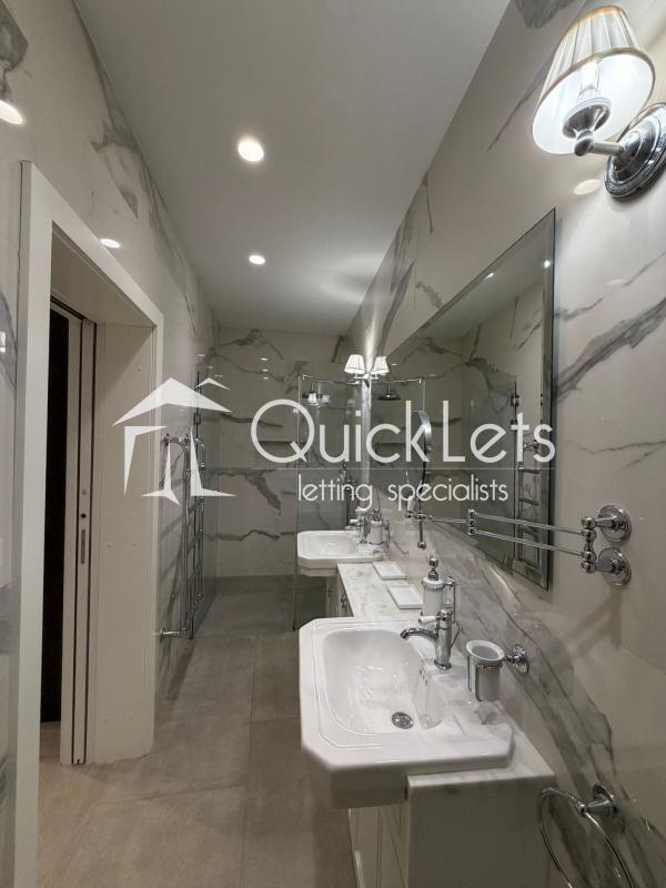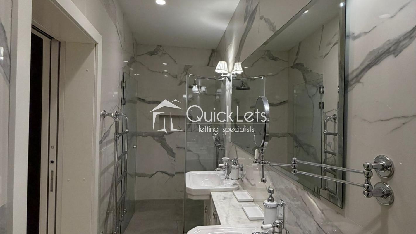 The property enjoys high ceilings that enhance the sense of space and natural light throughout. It comprises a bright and modern open-plan kitchen, living, and dining area, fully furnished and equipped with quality appliances and stylish finishes. The apartment offers two spacious double bedrooms and two contemporary bathrooms, including an en-suite, all finished to a high standard.