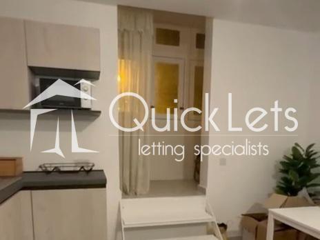 The layout consists of an open-plan kitchen, living, and dining area equipped with modern appliances. There are two rooms — a main double bedroom with an en-suite bathroom, and a second room currently set up as a study, which can easily be converted into a bedroom if required.