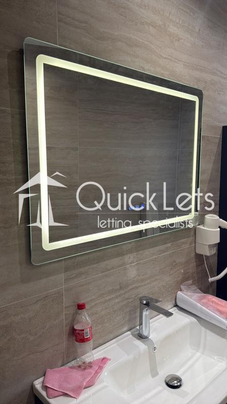 The property features a bright and modern layout with an open-plan fully equipped kitchen, living, and dining area, finished with contemporary furnishings and appliances.