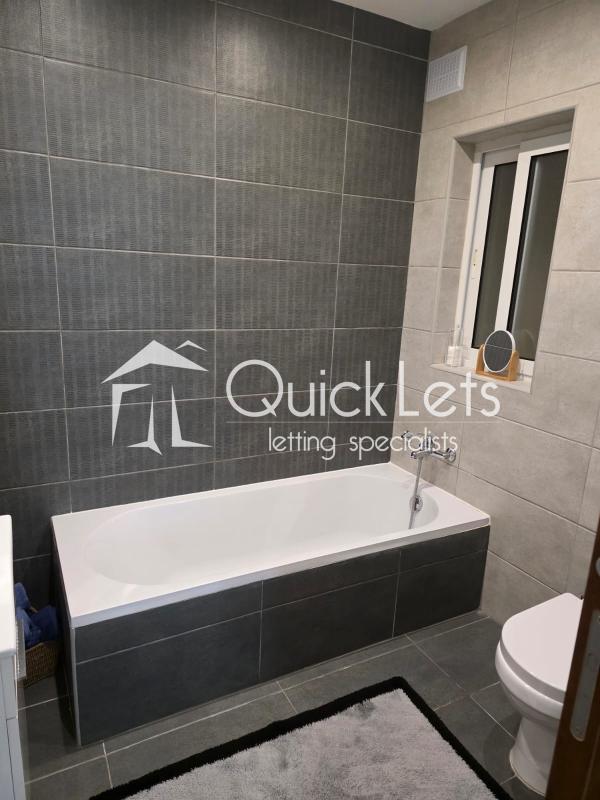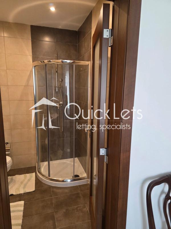 It includes an ensuite bathroom with a shower and a main bathroom with a bathtub.