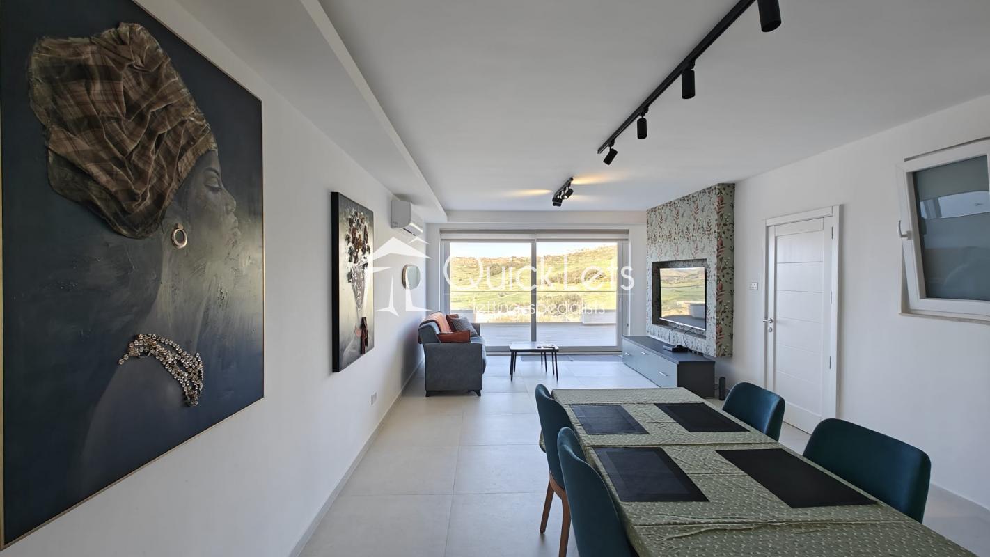 VICTORIA, Gozo - A highly finished two-bedroom penthouse, served with a lift. The apartment has an open-plan layout with a living/kitchen/dining area, modern appliances, a dishwasher, and is fully air-conditioned. A large fronted terrace, where you can sit out and enjoy the spectacular views. This property is ideal for a family or students, right in the heart of Victoria, a couple of minutes away from Barts Hospital, and a couple of minutes away from bars, restaurants, and a shopping center. Situated on a quiet block of a few units. Not pet-friendly. Garage Optional.