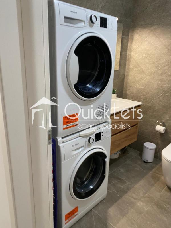 A sleek bathroom with walk-in shower and high-quality finishes complements the space, while a separate utility area with washer and dryer adds everyday convenience. Finished with contemporary tiling and neutral tones throughout, this home delivers a refined yet practical lifestyle just moments from the seafront, cafés, and all essential amenities.