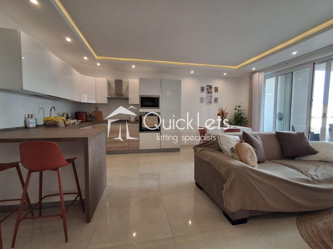 BUGIBBA: A charming 1-bedroom apartment located just steps from Bugibba Square, offering both convenience and comfort. The property features a spacious living area filled with natural light and modern lighting fixtures, perfect for relaxing or entertaining. The apartment includes a fully equipped open-plan kitchen integrated with the living area, creating a seamless space for cooking and socializing. The bedroom comes with a comfortable double bed, and the apartment has a modern bathroom. Step out onto the balcony, complete with an outdoor table and partial sea views, perfect for enjoying your morning coffee or evening relaxation. Ideal for those seeking a bright, central, and cozy home in the heart of Bugibba.