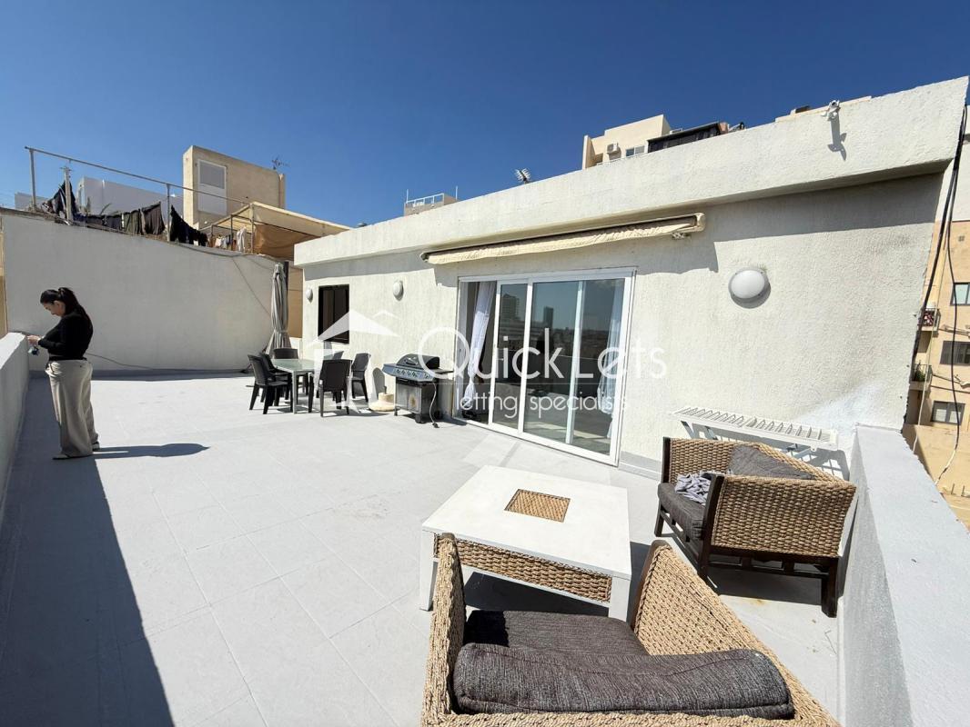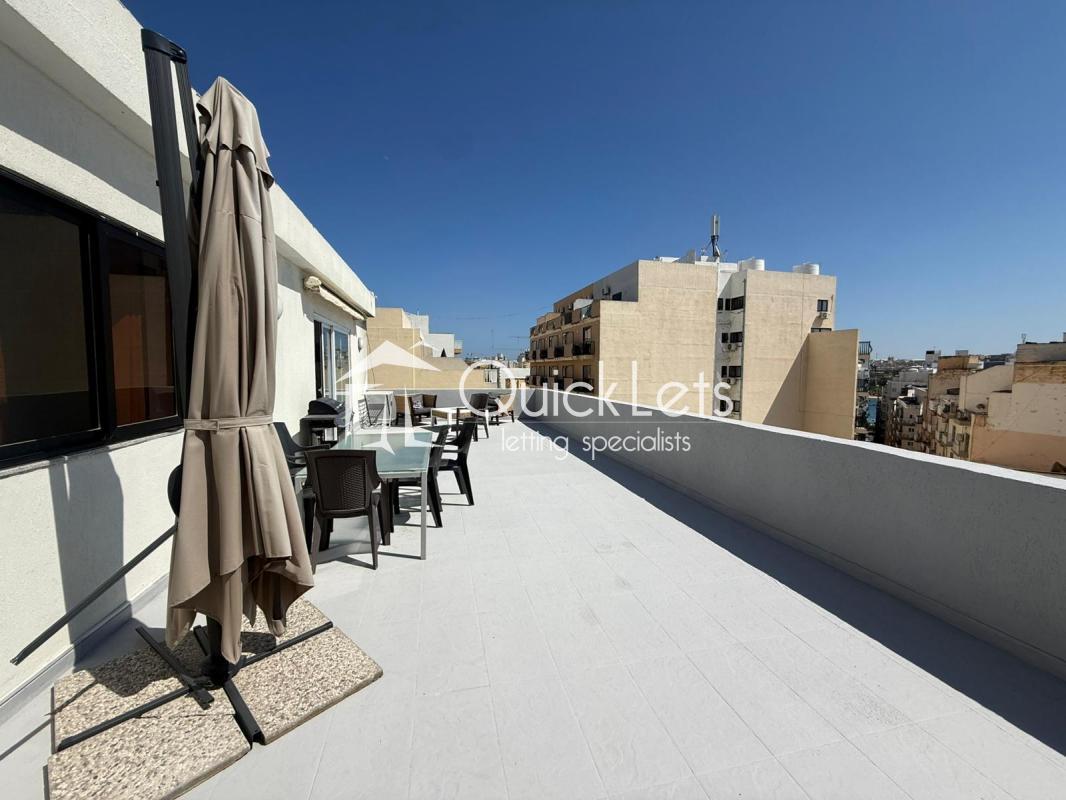 Modern Three-bedroom, Two-bathroom penthouse on the 5th floor, served with a lift. The property consists of a bright open-plan kitchen/living/dining area, fully equipped with all appliances. The main bedroom comes with an en-suite and a walk-in wardrobe. Includes front and back balconies, offering plenty of natural light and outdoor space. Finished to a high standard throughout.