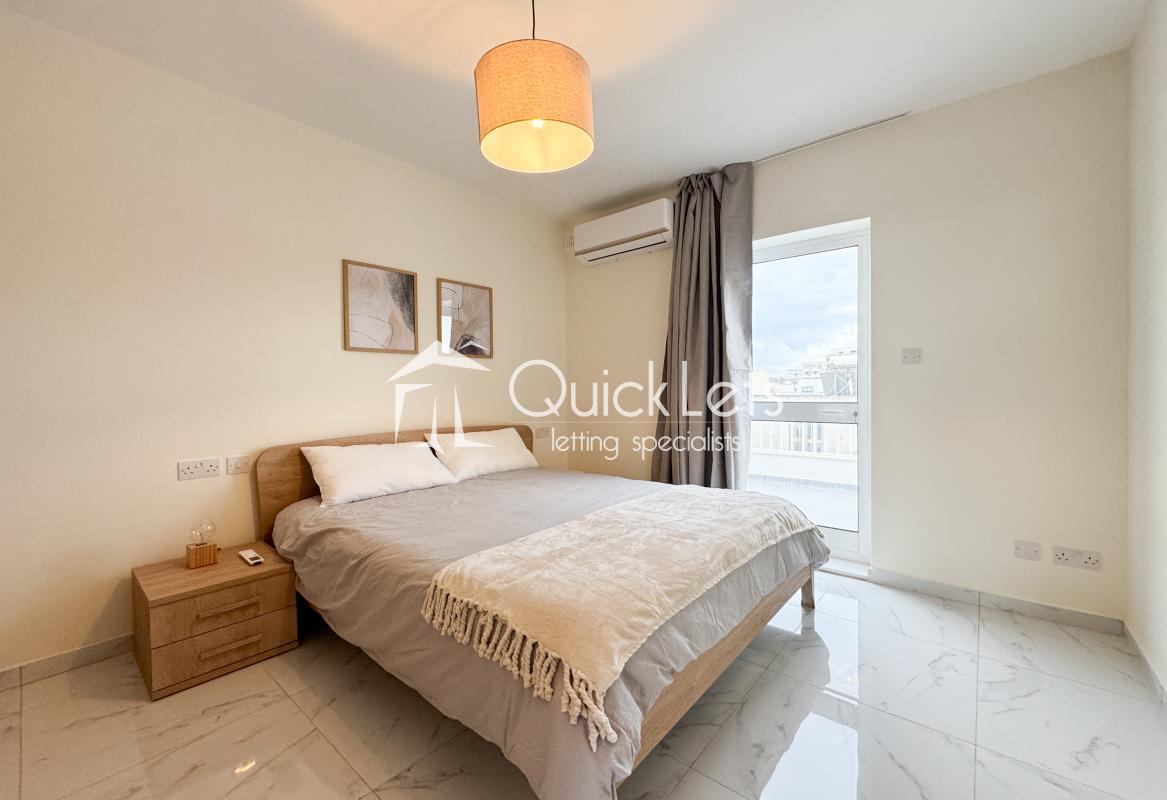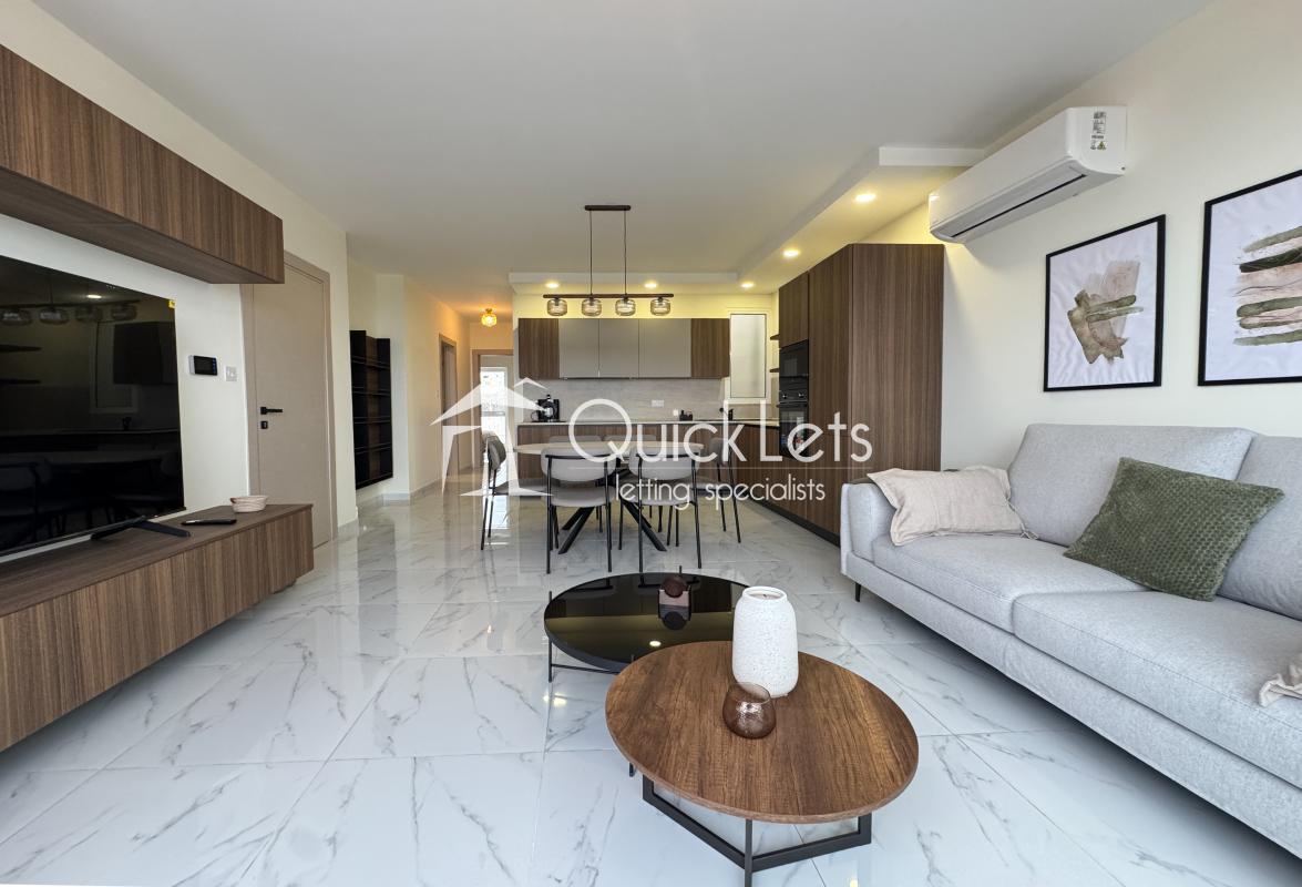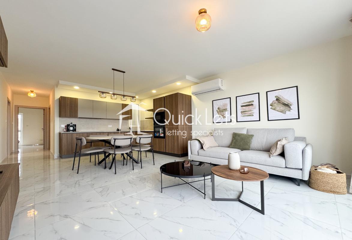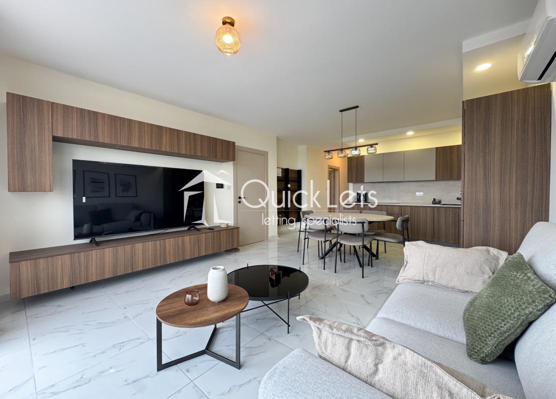 Inside, the penthouse is finished with brand new, carefully selected Italian furnishings, creating a refined yet comfortable atmosphere. The space is fully air-conditioned and thoughtfully equipped for modern living, featuring a sleek kitchen with an induction hob, oven, microwave, dishwasher, and a washing machine with dryer. Everyday comfort is enhanced with double-glazed apertures, a video intercom system, and a built-in BBQ area for effortless outdoor entertaining. A 75” television anchors the living space, while the master bedroom is complemented by its own 40” screen.