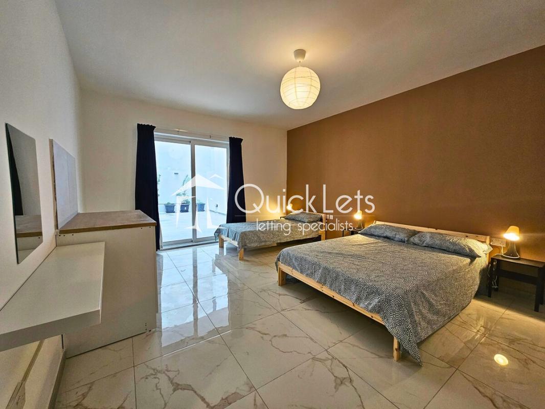 A spacious Three-bedroom maisonette offering a comfortable and well-designed layout, featuring three bathrooms and full air-conditioning throughout. The property includes an open-plan kitchen, living, and dining area, creating a welcoming and practical living space. The kitchen is fully equipped with essential appliances, including a microwave, toaster, and kettle, while a washing machine is also available within the apartment for added convenience. A large private backyard provides the perfect outdoor area for relaxing or entertaining.