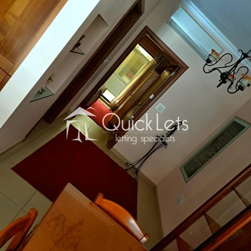 ZABBAR - A modern and well-kept two-bedroom elevated maisonette. The property layout comprises the open-plan sitting/dining/kitchen area, the main bedroom with a double bed, the spare bedroom with a single bed, access to the backyard, the bathroom with a bathtub, and the washroom with a washing machine. There is an A/C in the open plan area for comfort. The property comes fully equipped with a TV and two sofas, fridge/freezer, oven, hob and hood, washing machine, and curtains.