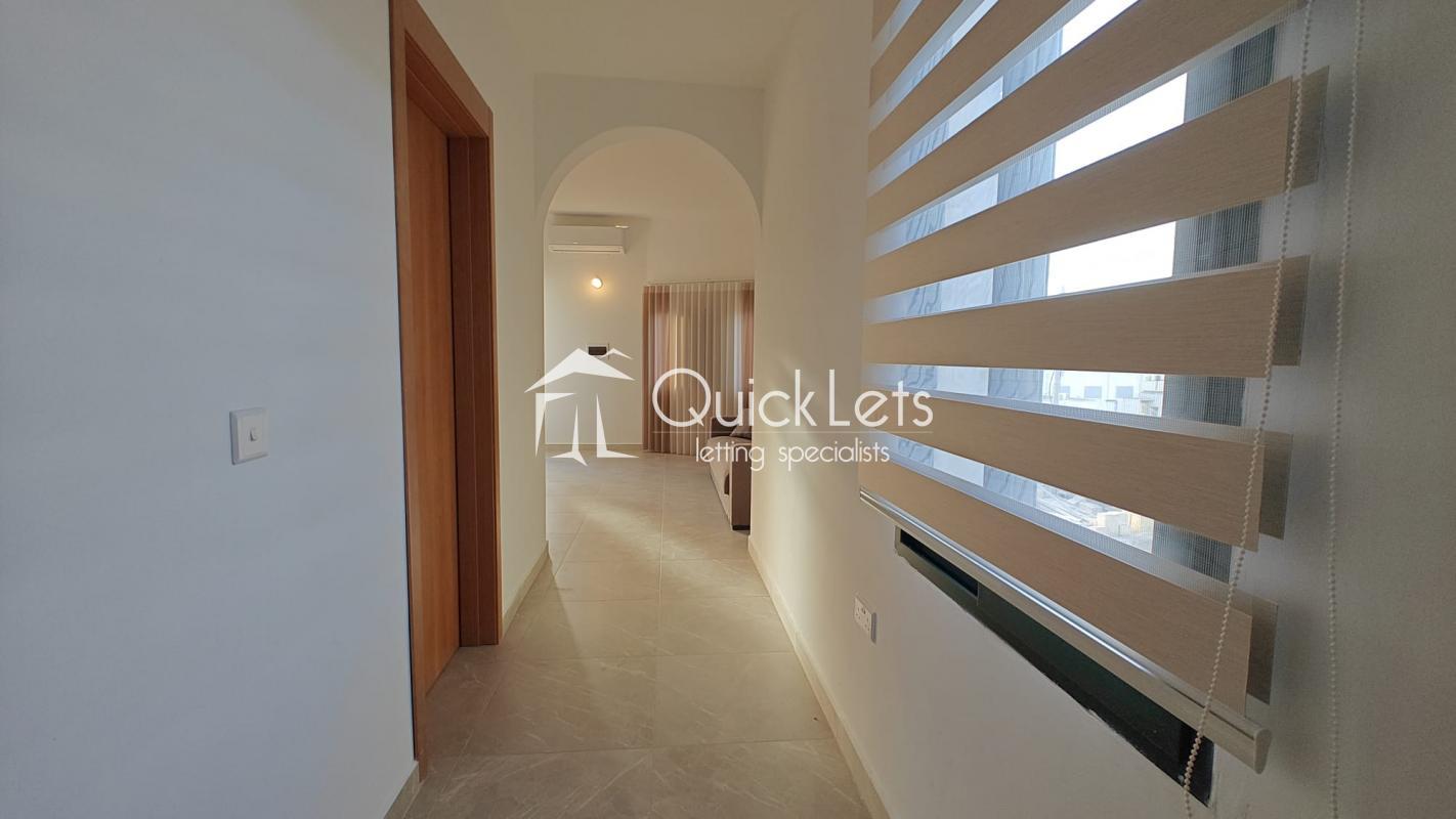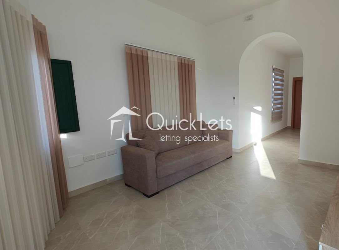 Xewkija, Gozo - Brand new, furnished three-bedroom maisonette, own entrance, situated on the first floor, which could be reached by a flight of steps. The layout consists of a Kitchen and dining, including appliances. Sitting Room, and three bedrooms with one en-suite and a main bathroom. The main bedroom has a double bed, and another has single beds, while the third bedroom has a single bed. Fully airconditioned. The utility room is left unfurnished and could be used as a study room. This property is ideal for a family. Very large outdoor area with spectacular views – the whole roof on top of the property and a large terrace adjacent to the property. Close to all Amenities - within walking distance to Supermarkets, Pharmacy, bus stop, gym, and Victoria. No lift and not pet friendly.