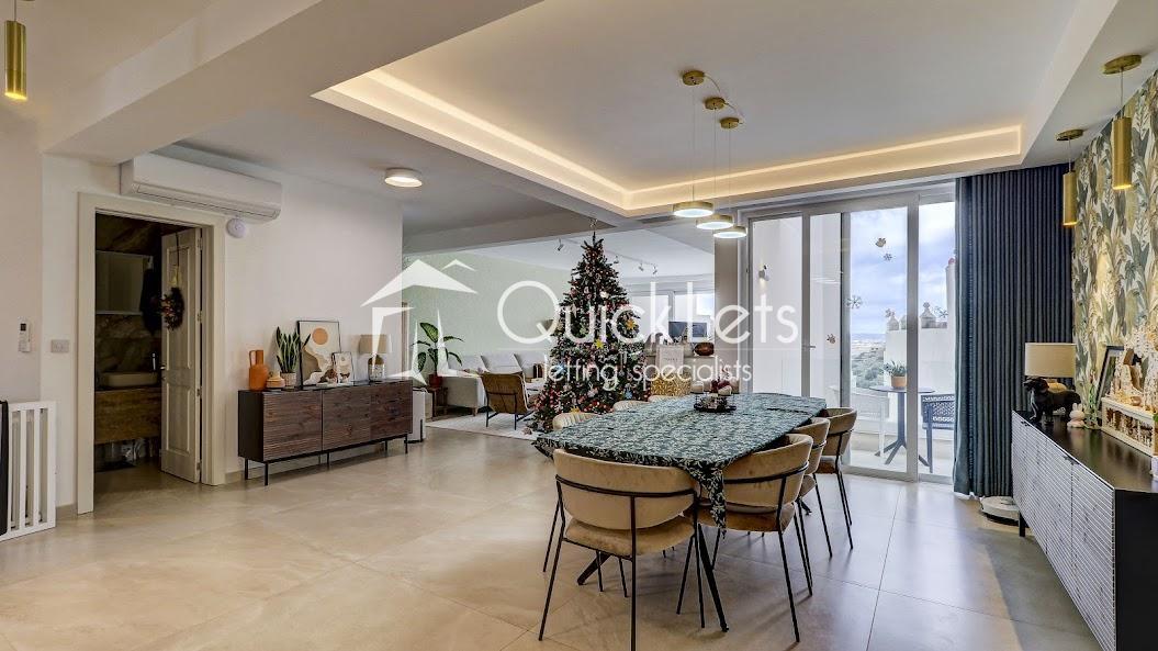 Luxurious 4-bedroom, 7-bathroom villa situated on the prestigious Madliena/Swieqi border. Spanning three levels with a generous 550 sqm of living space, this exceptional property features a stunning 10-meter swimming pool, two fully equipped kitchens, a dedicated office room, a separate laundry room, and a spacious 3-car garage. Perfect for elegant living and entertaining in one of Malta’s most sought-after residential areas.