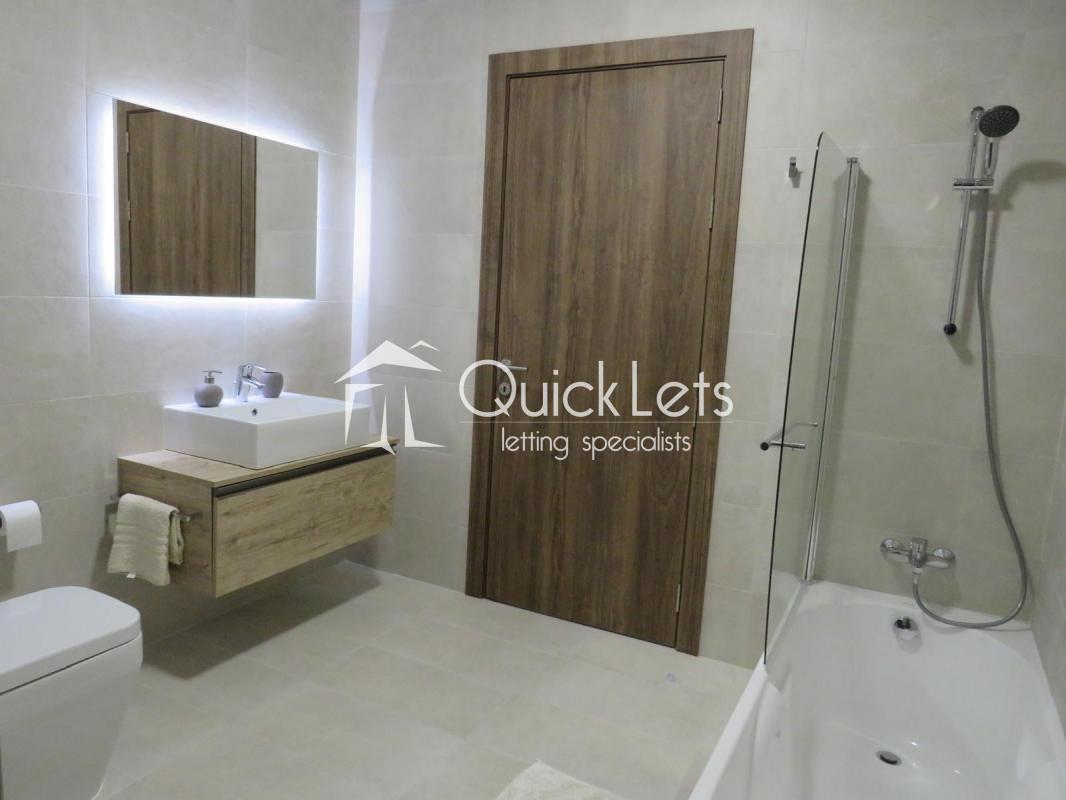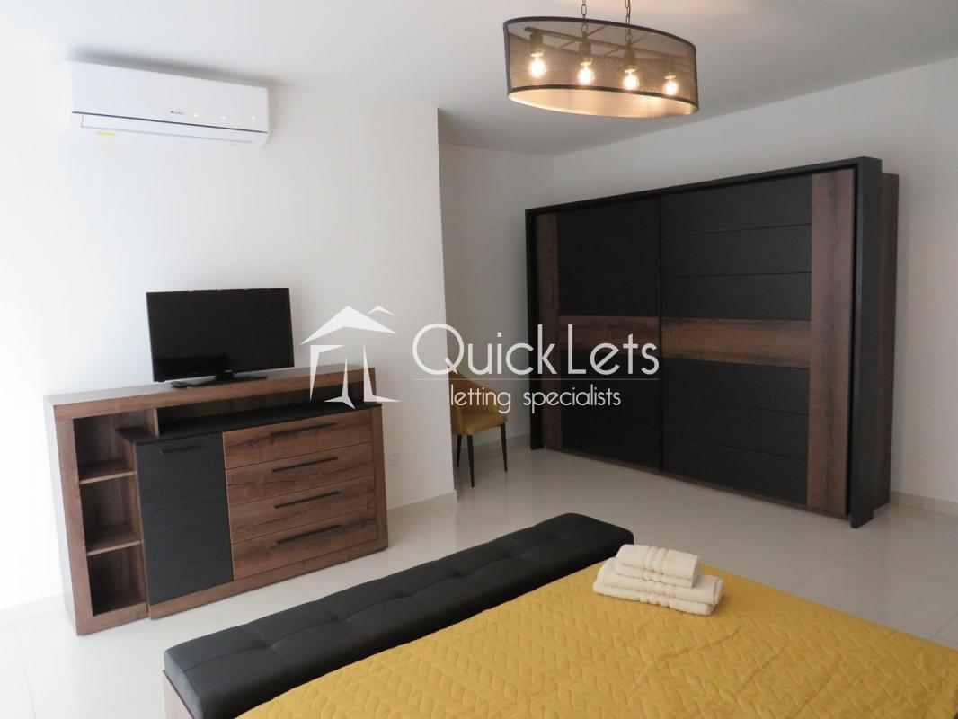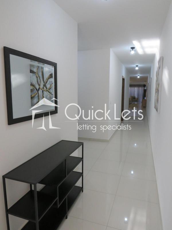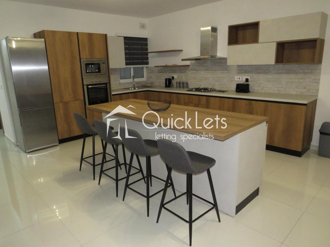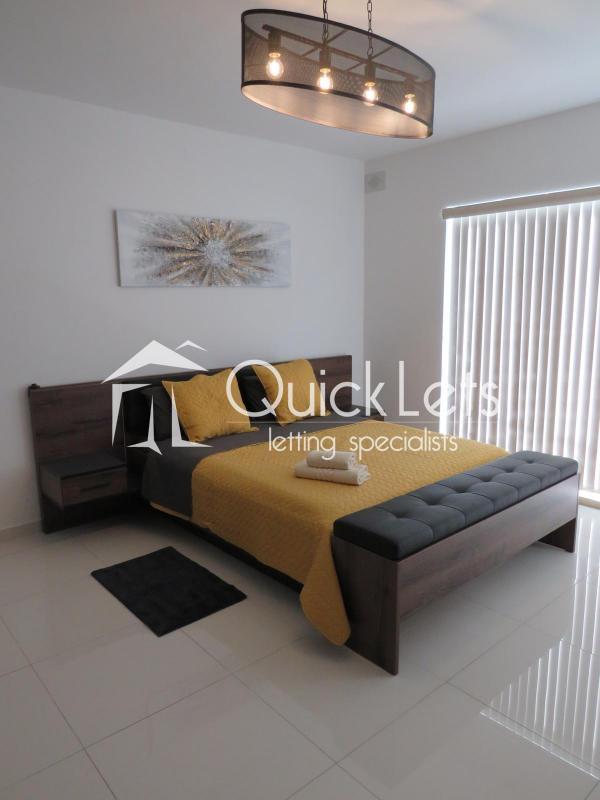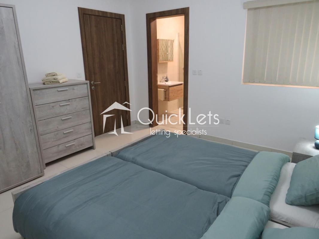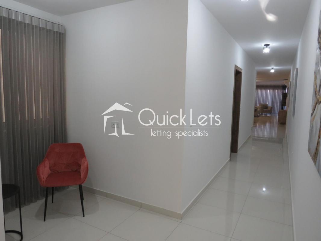 MELLIEHA. It is a modern, spacious 160 sqm 3rd-floor apartment situated in a quiet residential area, close to all amenities. The property features a large open-plan kitchen, living and dining area leading onto a front terrace with distant sea and town views, three double bedrooms (main with en-suite), a separate bathroom, and a sunny, spacious back terrace. It is fully equipped with air conditioning, a dishwasher, a washing machine, and TVs, offering comfortable living in a well-maintained smart block.