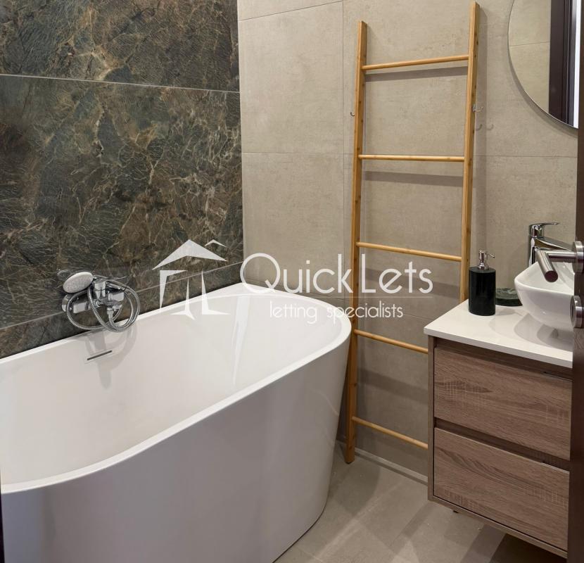 The apartment includes two large double bedrooms, along with a third versatile room that can easily serve as a children’s bedroom, nursery, or a quiet study area for homework or remote work. There are two modern bathrooms, including a family bathroom with a bathtub and a private en-suite, offering practicality and comfort for busy households.