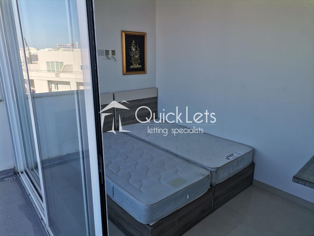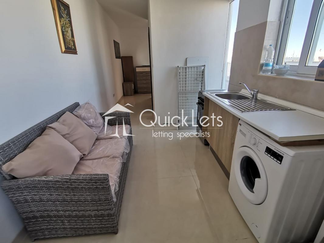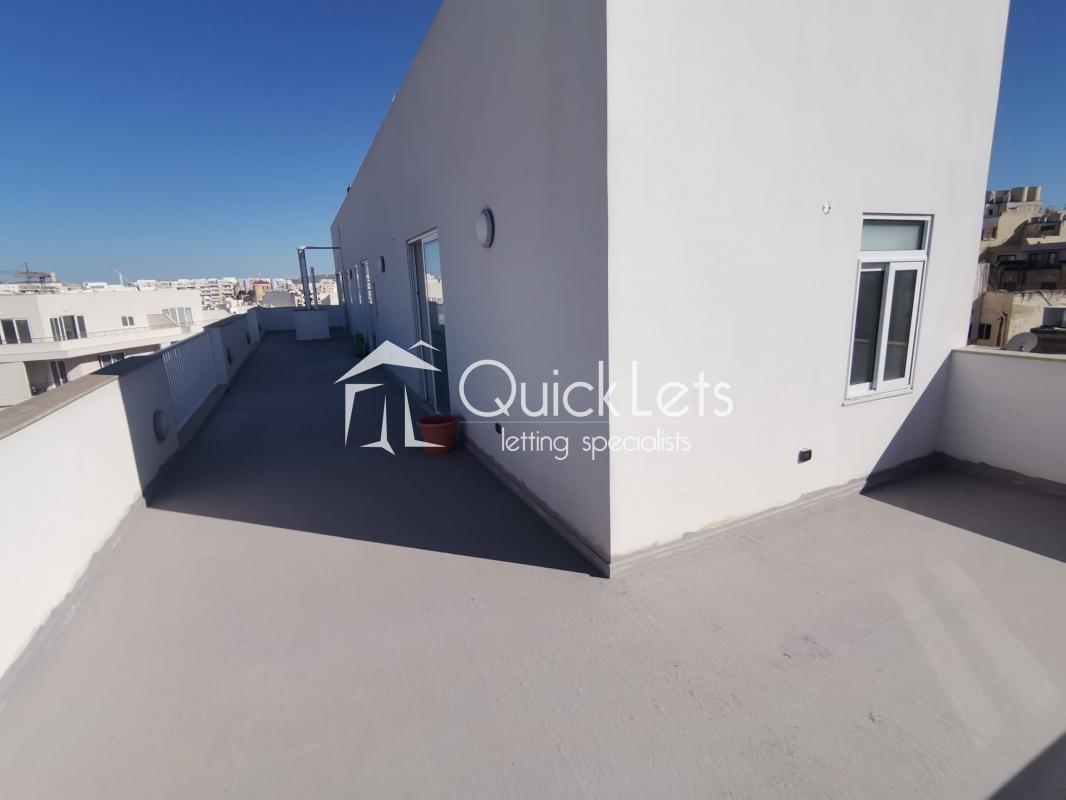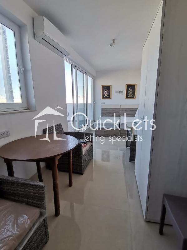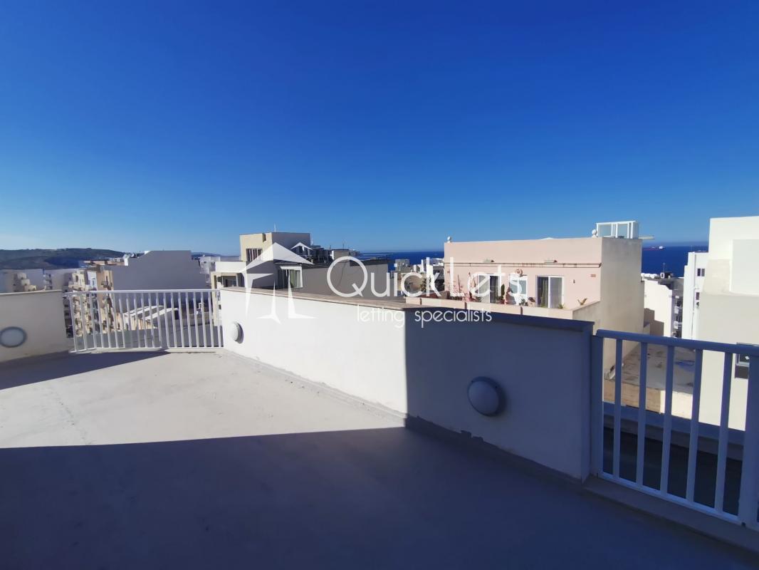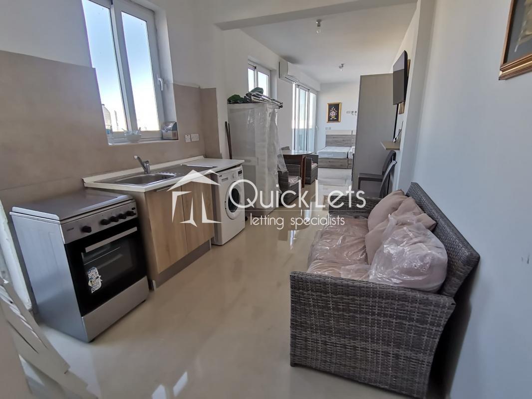 BUGIBBA - Set in the heart of Bugibba, this studio penthouse offers a unique sense of space, with an outdoor area that truly defines the property. The terrace is exceptionally large, matching the internal size of the apartment. Inside, the layout is open-plan, combining the living, dining, and sleeping areas into a practical and comfortable space, ideal for easy everyday living. Natural light fills the apartment, enhancing the overall feeling of openness. The property also enjoys a distant sea view.