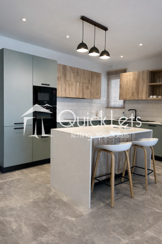 This fully furnished property offers an open-plan kitchen, dining, and living area, ideal for both relaxation and entertaining. The open-concept kitchen features quality appliances, including a dishwasher.