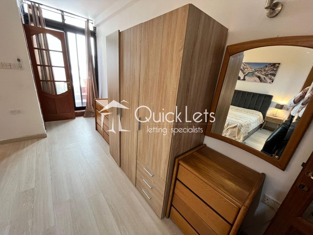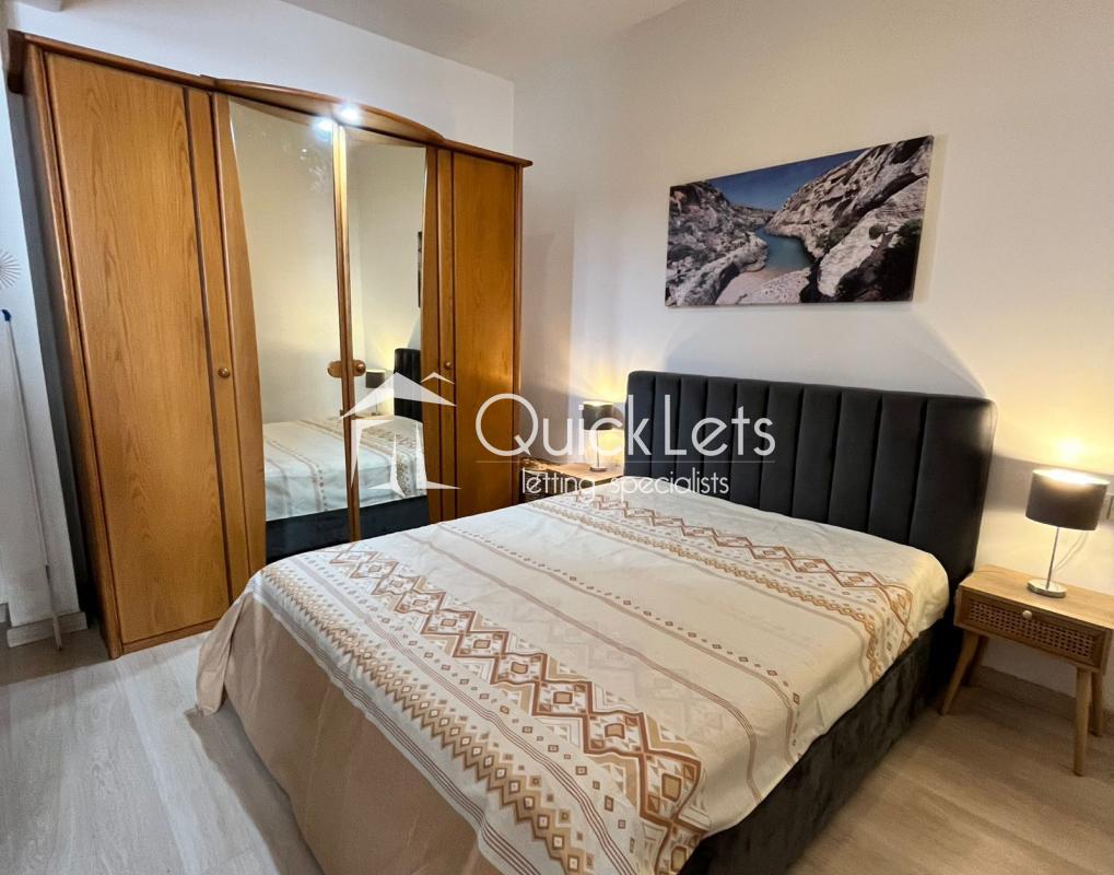 Maisonette in Gzira featuring a spacious terrace, one comfortable bedroom, one modern bathroom, and a dedicated office space. Fully equipped with sofa, TV, and all essentials for comfortable living in a central location.
