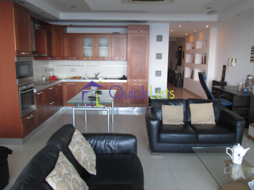 SLIEMA - Seafront, large apartment, fully air-conditioned and comprising of entrance hall, open-plan fully equipped kitchen/living/dining with dishwasher, study area, large furnished balcony enjoying lovely views, three bedrooms (two en-suites), main bathroom, and utility room with both washing machine and tumble dryer. An optional interconnecting lock-up garage further complements this spacious home.