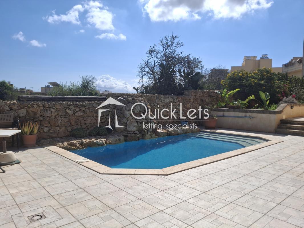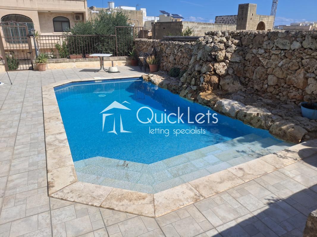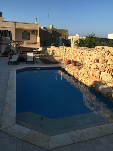 XAGHRA, Gozo -This Gozo farmhouse presents three double bedrooms for a tranquil countryside escape, complemented by poolside leisure, a barbecue spot, and a charming courtyard. Recently renovated and fully furnished, it showcases a fresh kitchen and spacious deck area, offering a harmonious blend of comfort and relaxation.
